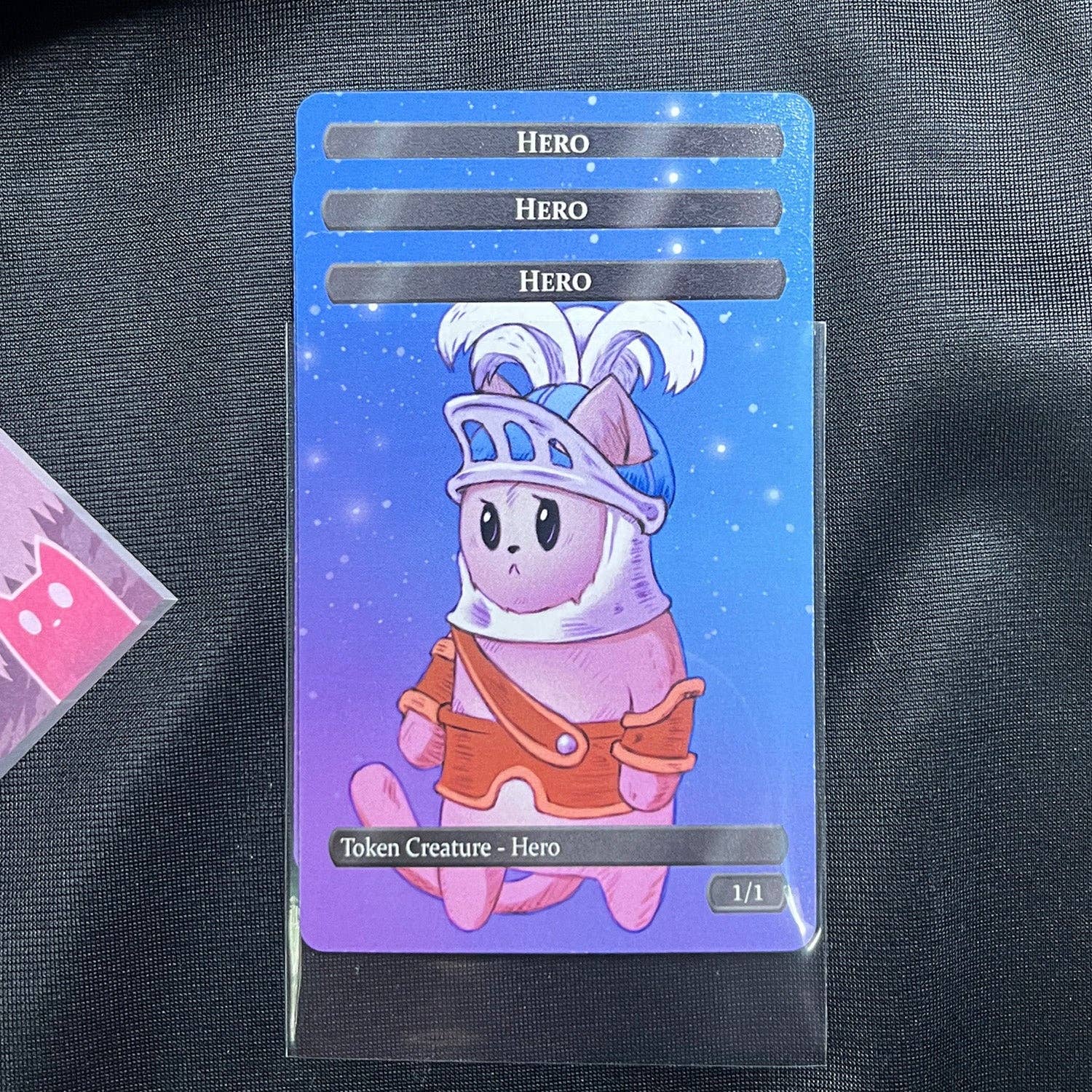 This token set includes three double sided Hero tokens as Onion Knights from early FF games (as cats!) On the opposite side you'll find M*ogle tokens, but don't let the artwork and wings trick you; they have lifelink, not flying!